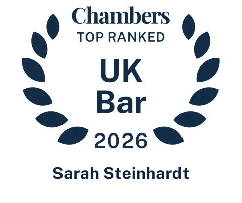Sarah has been ranked in Chambers and Partners for Social Housing since 2016. The current edition (2026) identifies her as a ‘Star Individual’ and says: “Sarah Steinhardt is an effective, accomplished advocate with pronounced expertise in mental capacity and Equality Act issues in the context of social housing. Her impressive practice takes in homelessness cases and challenges to allocation schemes. She regularly handles disability discrimination matters as part of her diverse practice.”